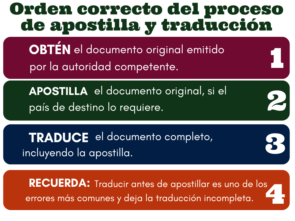 Orden correcto del proceso de apostilla y traducción