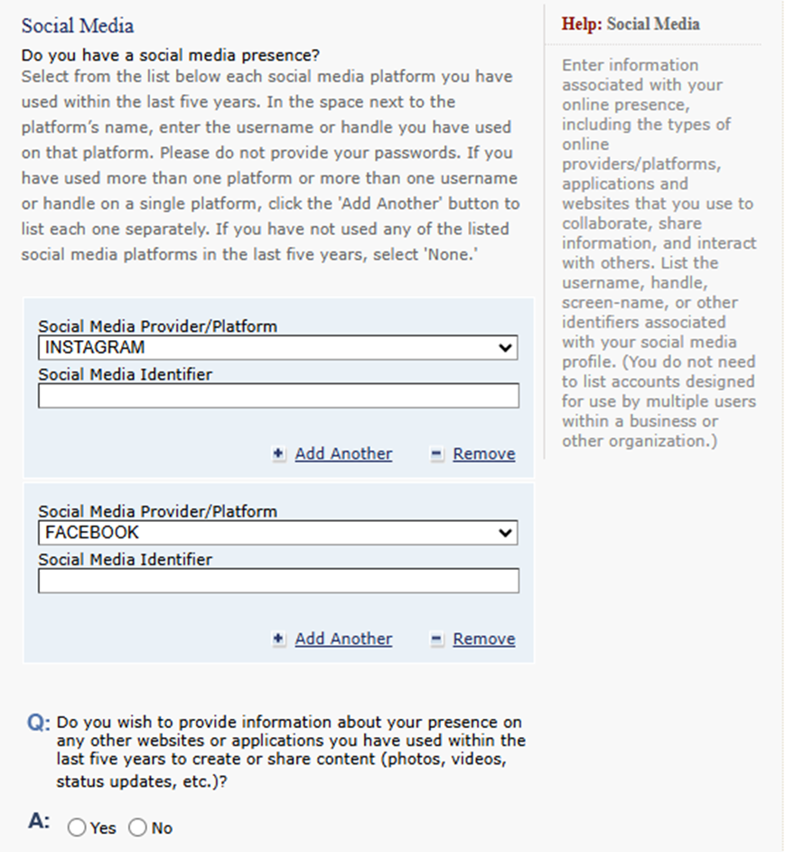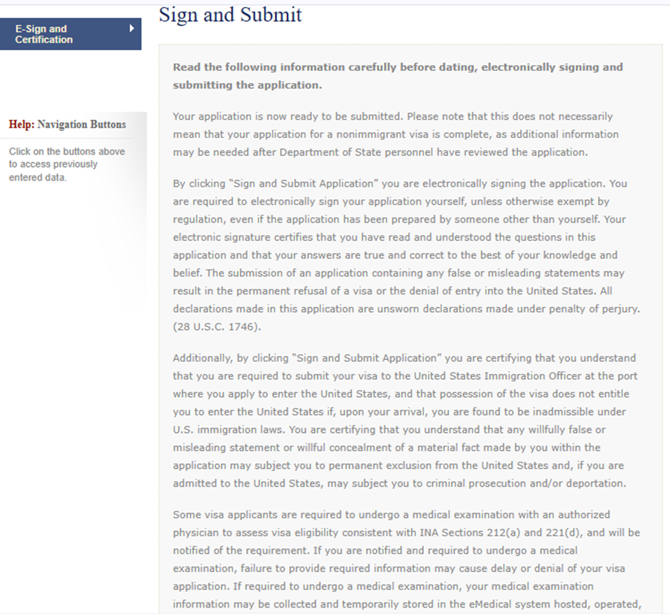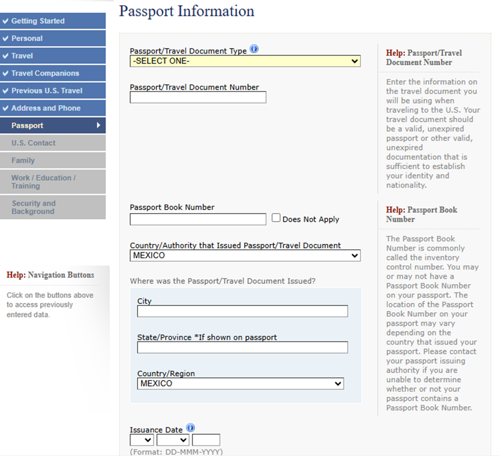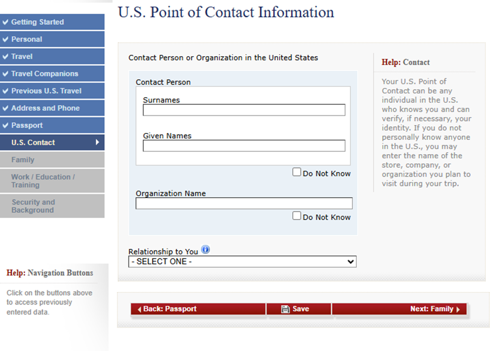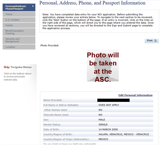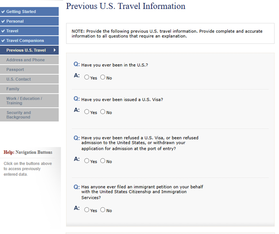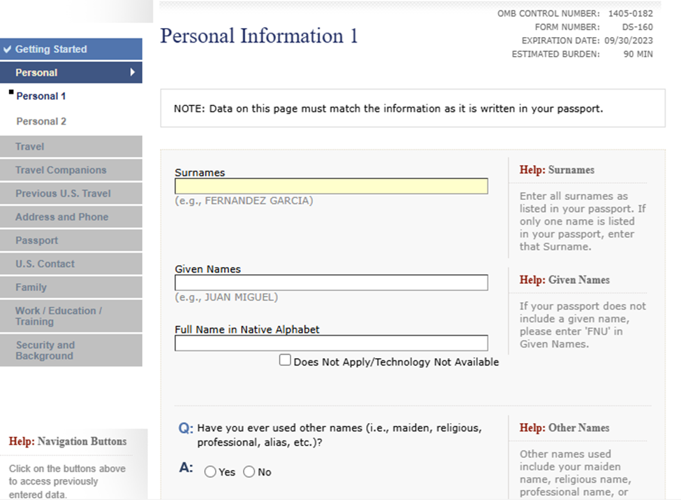 El oficial consular basará gran parte de la entrevista en la información previamente capturada en el formulario DS-160 visa.