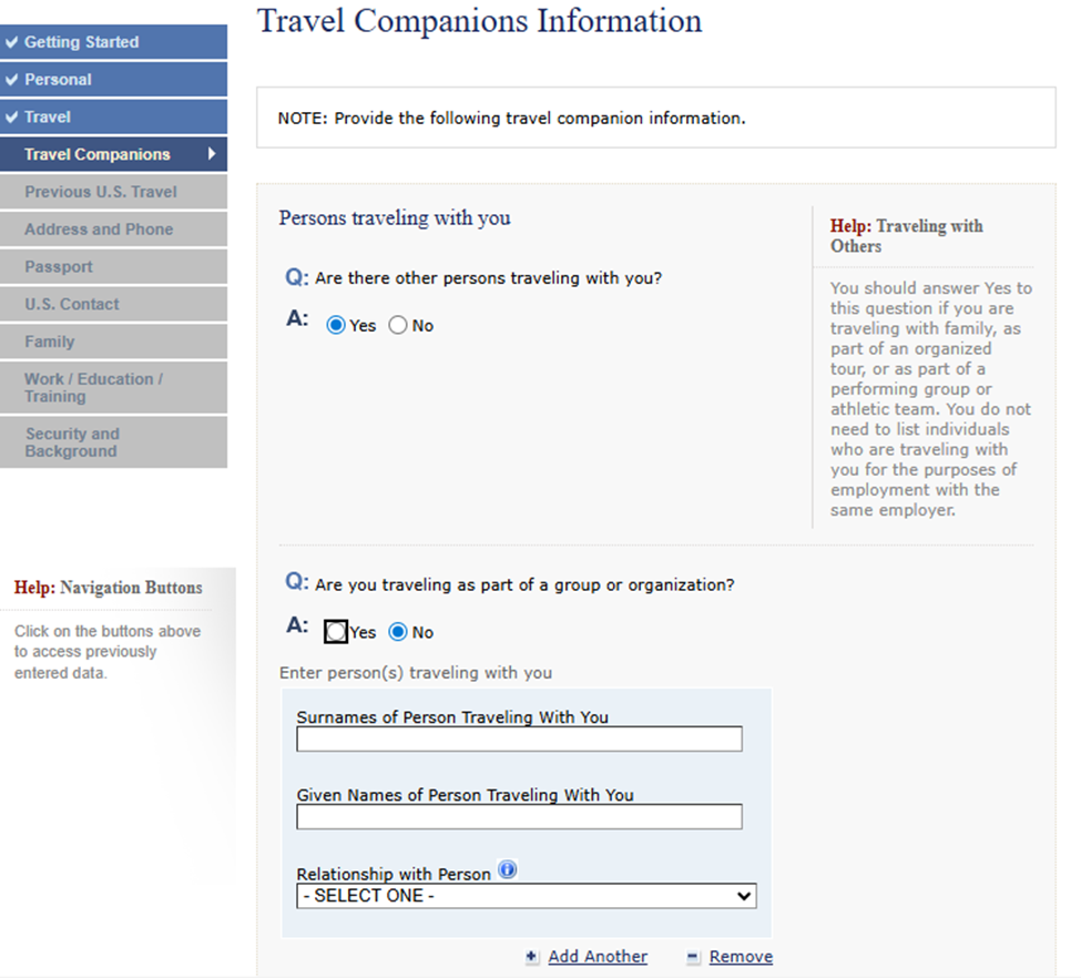 Travel Companions: Datos de las personas que viajarán contigo, si aplica.